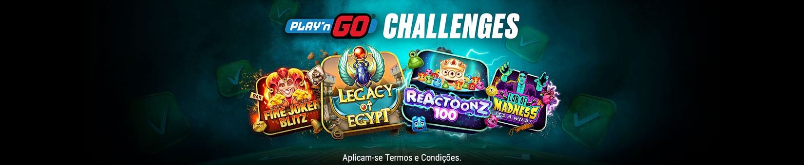 Os Desafios Play'n GO apenas se podem completar jogando slots seleccionadas da Play'n GO, tal como indicado na sua janela de “Desafios”.