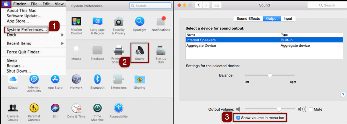 Verifique se o volume não está sem som no seu Mac. Se não tiver o controlo de volume na sua barra de menu, siga estes passos: